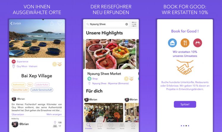 Die App lässt Euch verschiedenste der genannten Aktivitäten und Touren buchen. 10 Prozent des Umsatzes spenden die Macher dann an Projekte in Entwicklungsländern.