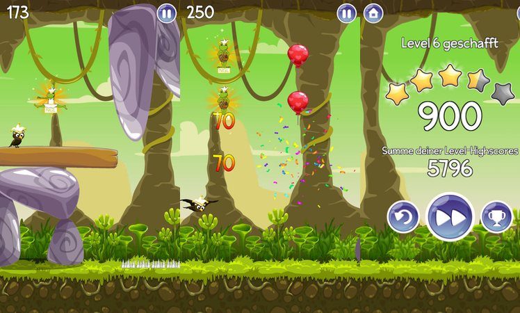 NGL The Game: Flappy Bird reloaded. Ihr steuert in diesem One-Tap-Game eine Eule durch eine Art Dschungel und sammelt Frosch-Orden. In jedem der 12 großen Level gibt es neue Spielelemente, z.B. Sturm, Regen, feindliche Vögel, Aufzüge oder Flöße.