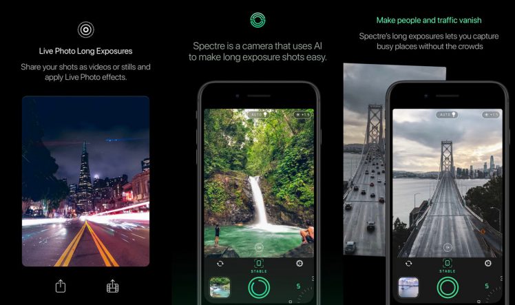 Die Anwendung stammt von den Entwicklern von Halide, einer weiteren beliebten Kamera-App. Spectre bietet verschiedene Werkzeuge für die perfekte Nutzung von Fotos mit längerer Belichtung.