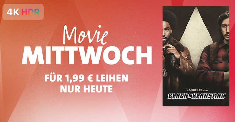 Auch heute gibt es bei Apple einen Film aus dem iTunes-Katalog zum einmaligen Sonderpreis. Diesmal ist „Blackkklansman“ als Leihfilm für nur 1,99 Euro in 4K HDR erhältlich. Die Story: