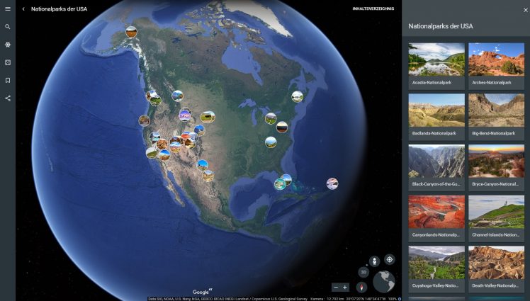 Google Earth hat ab sofort geführte virtuelle Touren durch viele US-Nationalparks im Angebot.