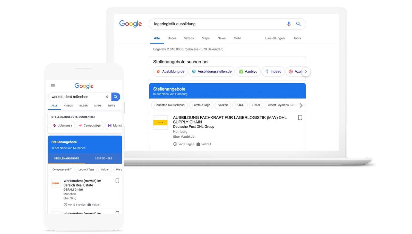 Jobsuchende können jetzt ihre Suche auch gezielt via Google starten.