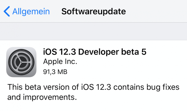 Nun könnt Ihr den Download anstoßen: Apple hat gerade die Beta 5 von iOS 12.3 veröffentlicht. Sollte es interessante Neuerungen geben, melden wir uns noch mal zur Beta 5.