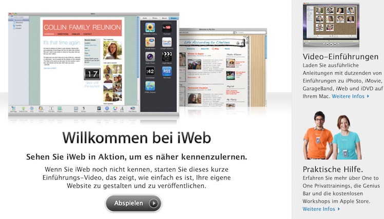 Daran erkennt man den damaligen Stellenwert, den iWeb für Apple vor 13 Jahren hatte. Das Programm zur Website-Erstellung war nicht wie Pages, Numbers und Keynotes in iWork enthalten, sondern musste als Software-Paket hinzugekauft werden.