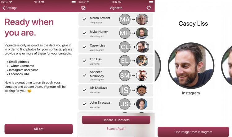 Die brandneue iPhone-App Vignette – Update Contact Pics hilft Euch dabei, Kontakt-Bilder aktuell zu halten.