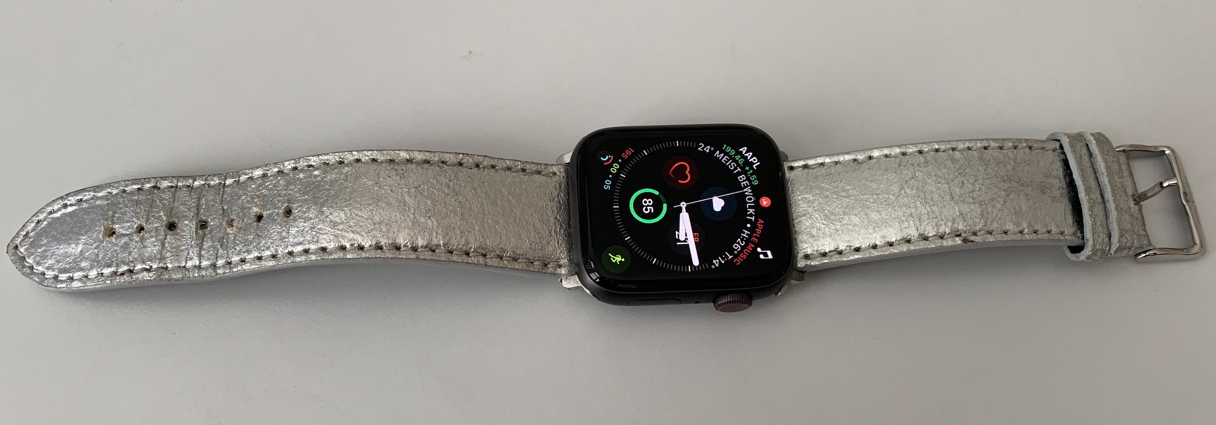 Entschieden habe ich mich für eine ganz besondere Armbandvariante, in Silber. Spacig sieht es aus, die 70er lassen grüßen. Und genau das hat dann für eine Menge Aufmerksamkeit gesorgt. Das silberglänzende Material sorgte unterwegs und im Café gleich mehrere Male für Nachfragen, wo ein solches Band zu kaufen sei.