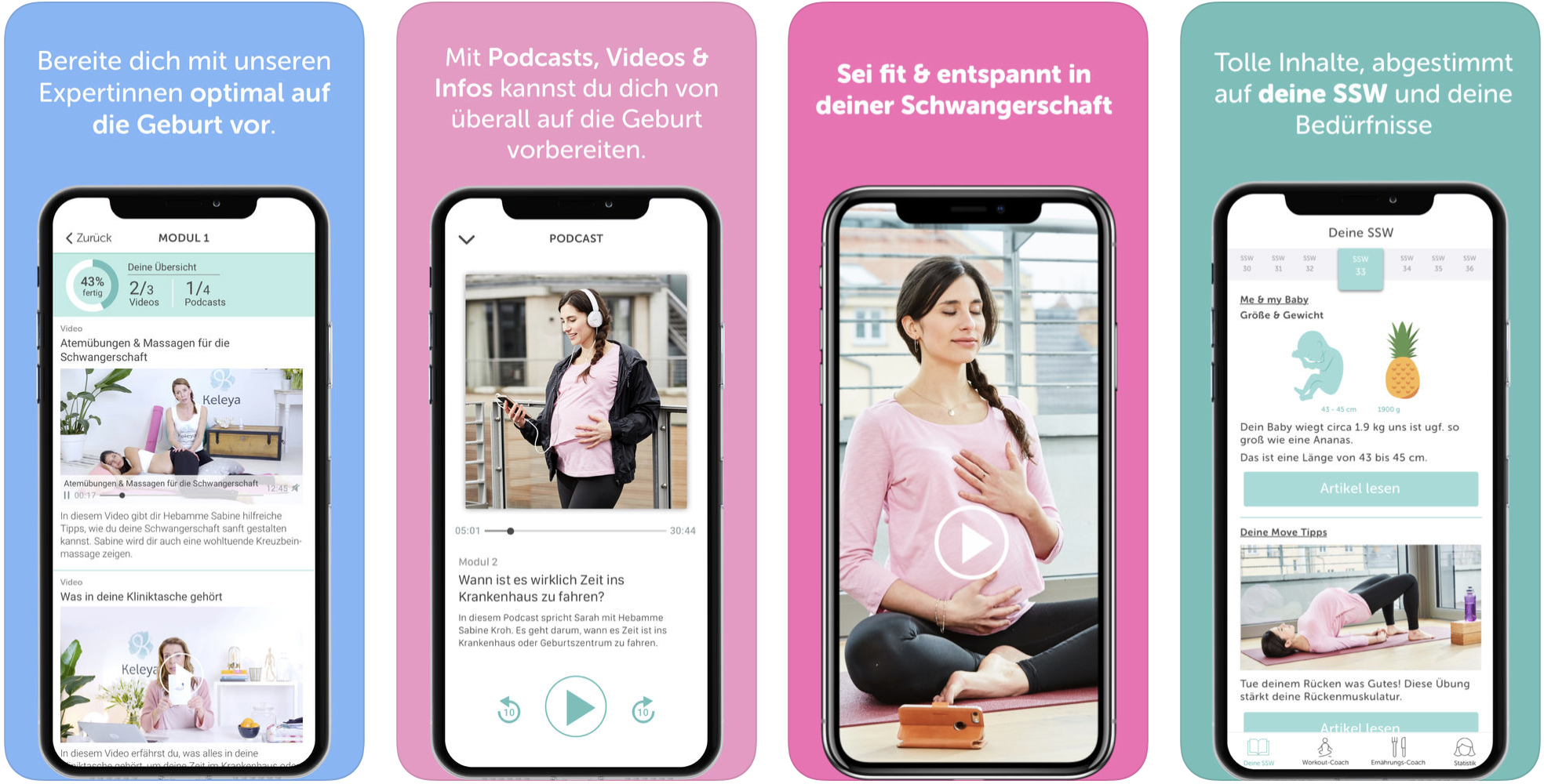 Gegründet von Victoria Engelhardt und Sarah Müggenburg hat sich Keleya auf die Fahne geschrieben, werdende Mamas bei der Schwangerschaft zu unterstützen. Die App Schwangerschaft Baby ist eine Art Gesundheitscoach und gibt wertvolle Infos, Workouts und Ernährungstipps. Seit Sommer 2017 wurde die App über 100.000 mal heruntergeladen und beschäftigt in Berlin ein Team von 10 Mitarbeitern.