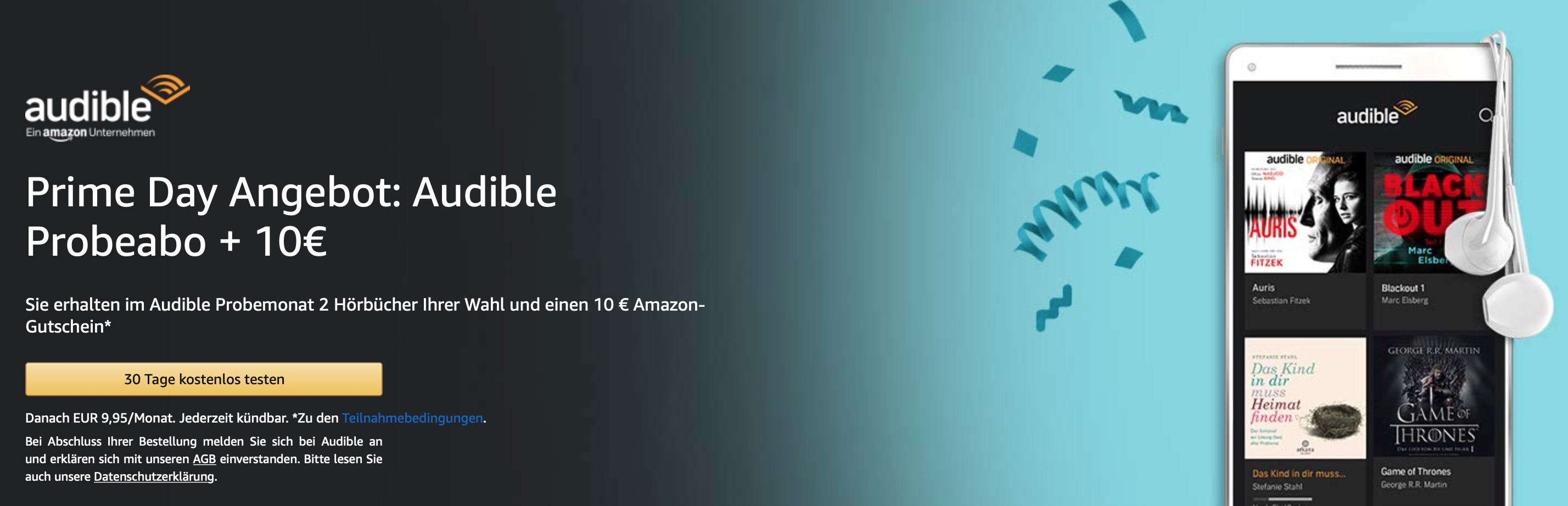 Vorweg: Der Deal gilt nur noch bis heute, Dienstag, 23.59 Uhr. Und qualifiziert sind Audible-Neukunden, die Prime-Kunden sind. Ausgeschlossen sind Audible-Bestandskunden oder diejenigen, die Audible schon mal getestet haben. Pro Kunde ist der Deal auch nur einmal anwendbar.