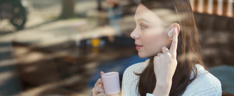Die komplett kabellosen Kopfhörer sind neu erschienen und bestehen aus drei Teilen: zwei Ohrhörern und einer Lade-Hülle, ähnlich wie die AirPods. Die Lade-Hülle wird über einen USB-C-Anschluss aufgeladen.