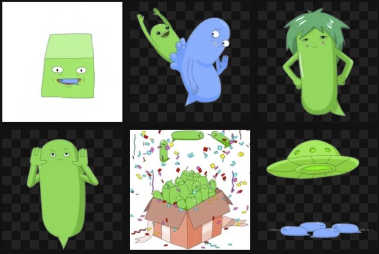 Die GIFs zeigen allesamt süße grüne Blasen-ähnliche Wesen. In der Beschreibung heißt es: