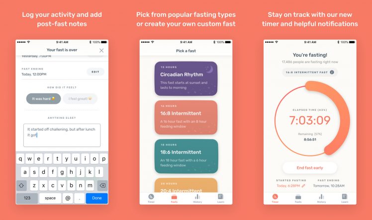 Die Anwendung wurde geschaffen, um Euch beim Fasten zu unterstützen. Sie bietet verschiedene Fast-Arten. So zeigt Euch zum Beispiel ein Timer an, wie lange es noch dauert, bis Ihr wieder essen dürft.