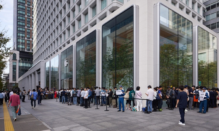 Einige haben global bereits seit einigen Stunden geöffnet – und Apple teilte nun erste Fotos vom Start. So warteten viele Kunden vor dem neuen Store in Tokio (Foto unten).