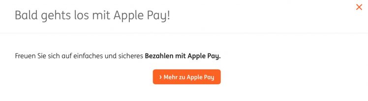 Mit einem Klick auf den Button „Mehr zu Apple Pay“ verlinkt die ING auf ihre entsprechende Sonderseite. Wir gehen davon aus, dass der Start von Apple Pay in Kürze erfolgen wird – und melden uns dann natürlich wieder bei Euch (danke an alle Tippgeber).