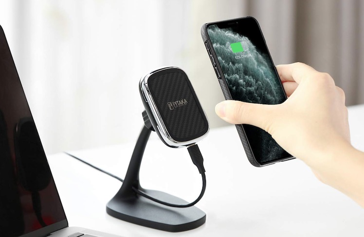 Letztere eignet sich im Übrigen nicht nur für die Nutzung im Auto, sondern auch als Halterung am Schreibtisch – ist also vielseitig einsetzbar. Beide Gadgets sind miteinander kompatibel, das iPhone lädt also in der Hülle auch auf der Halterung.