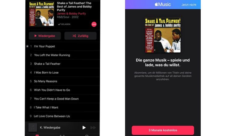 Das Problem ist immer das Gleiche: Geht der Nutzer in seine Musik-App, so sieht er in Alben vor einigen Songs einen Stern. Wird auf den entsprechenden Song mit Stern geklickt, wird das Lied nicht abgespielt, sondern es öffnet sich Werbung für Apple Music.