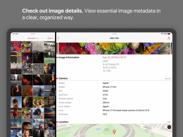Die Anwendung, heute unsere App des Tages, will einen simplen Ersatz zu Apples Galerie-App darstellen. Sie kann Eure Fotos anzeigen und stellt auch die Metadaten der Bilder dar. Nach einem neuen Update ist die App noch praktischer geworden.
