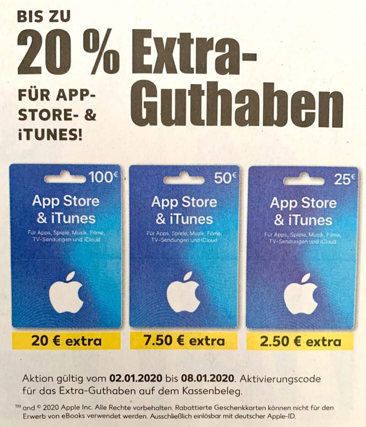 Ab morgen, 2. Januar 2020, läuft wieder eine gute iTunes-Karten-Aktion.