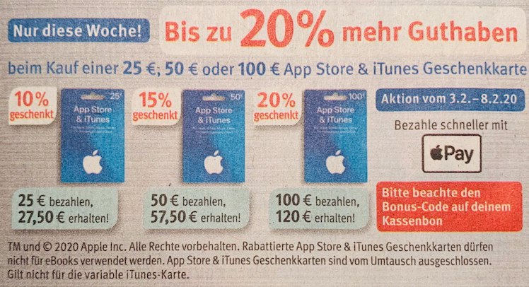 - 100 Euro iTunes-Karte kaufen + 20 Euro Bonus (20 Prozent)