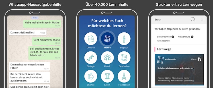 „Dank des uneingeschränkten Zugangs zu über 40.0000 Erklärvideos, Übungen und Klassenarbeiten kann der Unterrichtsstoff problemlos von zu Hause gelernt, verstanden und vertieft werden ─ egal, ob eigenständig oder angeleitet durch die Lehrkraft. So entstehen in der Zeit der Schulschließung keine Wissenslücken.“