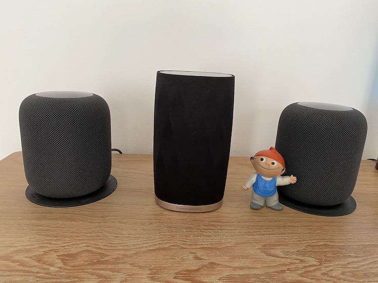 Wird er mit einem weiteren Formation Flex gekoppelt – dazu hatten wir uns für den Test einen zweiten Flex bestellt – entfaltet der Flex sein wahres Potential. Im Stereo-Klang erlebten wir das Surround-Klangerlebnis im Vergleich zu zwei HomePods (die wir privat besitzen/Foto oben) und zwei Sonos One (auch als Duo privat im Einsatz) noch intensiver. Zwei Formation Flex spielten noch eine Nuance klarer und filligraner auf. Der Sound klang ausgewogener und realer – dank der 96/24 bit-Audiolösung.