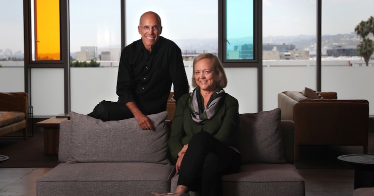 Hinter der Kurzfilm-App stehen Hollywood-Veteran Jeffrey Katzenberg von den Dreamworks Studios und Meg Whitman, die Ex-Chefin von eBay und HP (beide im Foto unten).