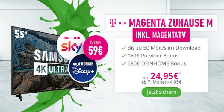 Richtig spannend finden wir den Lesertipp von Ralf (vielen Dank): Bei DEINHOME hat Ralf ein großes Bundle zum günstigen Paketpreis entdeckt. Es besteht aus 4K TV und MagentaZuhause, MagentaTV, Sky und Disney+.