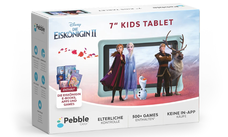 Pebble Gear arbeitet bei dem kindgerechten Device mit Disney zusammen. Beliebte Charaktere aus dem Disney-Kosmos lassen sich auf diese Weise auf die streng limitierten Tablets bringen. Im Vordergrund stehen kindgerechte Apps: Der GameStore Junior steht mit seinen Games, Apps und eBooks für sichere (auch Offline-)Unterhaltung für die Altersgruppe der Kleinsten, die natürlich noch nicht stundenlang mit einem Tablet spielen sollten.