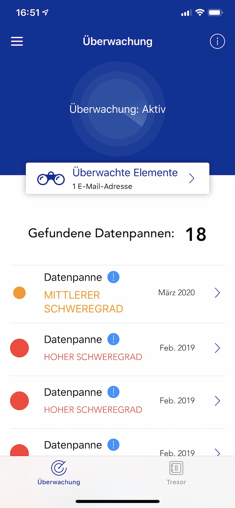 Die App wurde F-Secure, einem Anbieter von IT-Sicherheitslösungen, aber auch von Software-Programmen zum Datenschutz, veröffentlicht und überwacht Online-Dienste, bei denen Ihr mit persönlichen Daten registriert seid. Bekommt der Anbieter Probleme, wird dies von der Anwendung registriert und Ihr erhaltet umgehend eine Benachrichtigung. So lässt sich ganz fix das Passwort ändern und viel Ärger vermeiden.