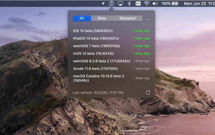 Dann taucht ein Dropdown-Menü auf. In diesem werden alle neuen Apple-Softwareveröffentlichungen wie Betas und App-Updates für Xcode und Co. angezeigt. Die Daten werden live aus einem RSS-Feed von Apple gezogen.