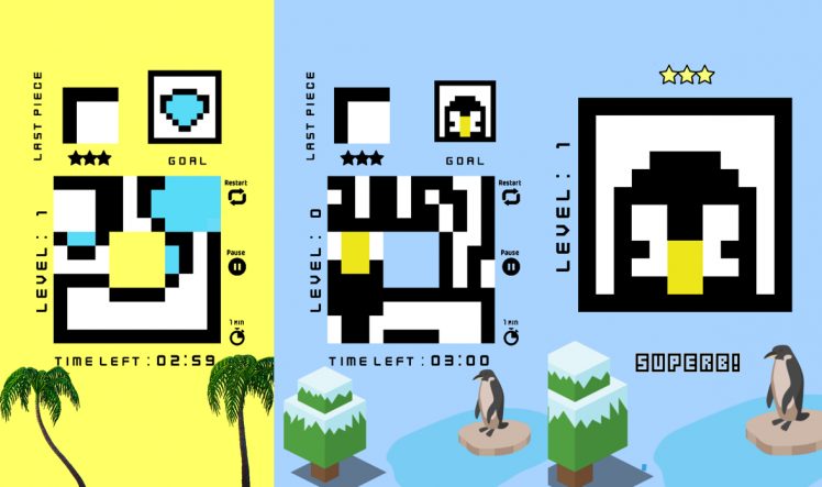 Ihr bekommt jeweils drei Minuten Zeit, um ein Level zu beenden. Unter Druck versucht Ihr, das vorgegebene Bild rechtzeitig richtig zusammenzubauen. Das ist meist nicht gerade einfach…