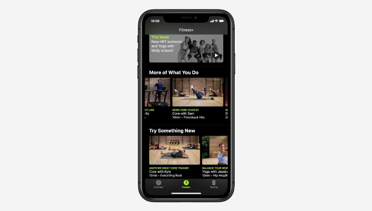 Dafür wurde ein neuer Dienst vorgestellt: Apple Fitness+. Er bietet insgesamt zehn verschiedene Workout-Typen, die Ihr am TV oder iPhone mit der Watch gemeinsam durchführt. Die meisten von ihnen benötigen kein weiteres Equipment.