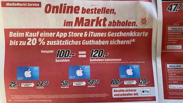 Traditionell informieren wir Euch am Wochenende vorab über günstige iTunes-Karten-Angebote.