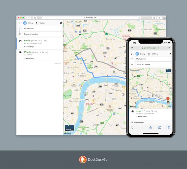 Schon seit einigen Jahren können sich Nutzer der privaten Suchmaschine Routen berechnen lassen. Nun setzt die Organisation auf eine neue Lösung: Apple Maps.