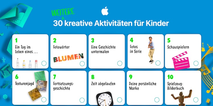 Dass es deutlich bessere Optionen – am besten schon an diesem Wochenende – für die Zielgruppe der 8- bis 12-Jährigen gibt, dokumentiert die Apple-Bildungs-Aktion „30 weitere kreative Aktivitäten für Kinder“, die das Apple Education-Team entwickelt hat.