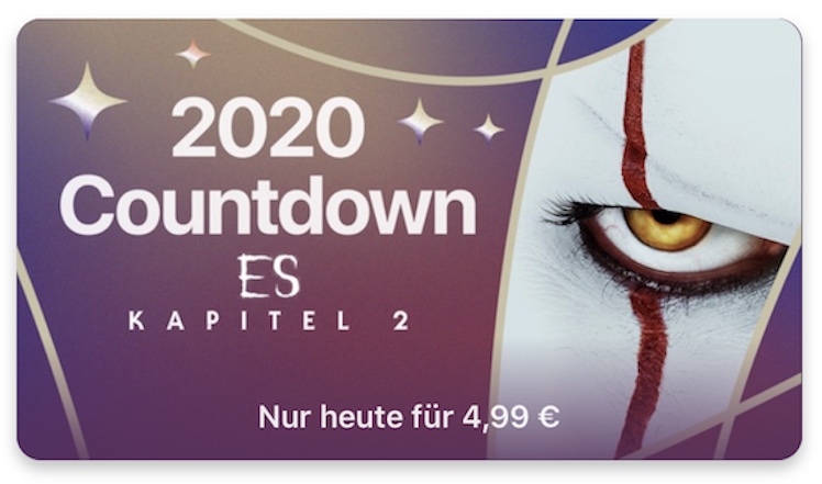 An Tag 29 der Aktion bietet Apple heute den Horror-Thriller ES – Kapitel 2 nach Motiven von Stephen King für nur 4,99 Euro zum Kauf an. Der Film lässt sich bis Mitternacht zum Sonderpreis laden.