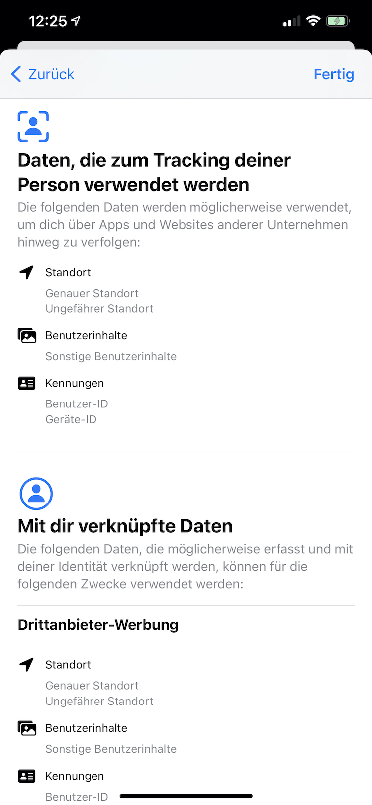 PS: Bei etlichen Apps seht Ihr den Hinweis „Keine Daten erfasst“. Das bedeutet: Der Entwickler hat nach dem Stichtag, den Apple für die Privatsphäre-Labels gesetzt hat, noch kein Update eingereicht. Bei der nächsten Aktualisierung sind die Datenschutz-Infos dann ein Pflicht-Eintrag.