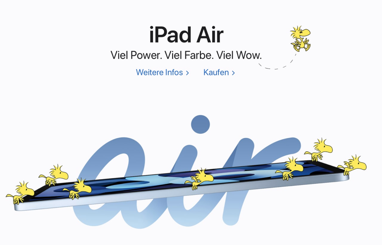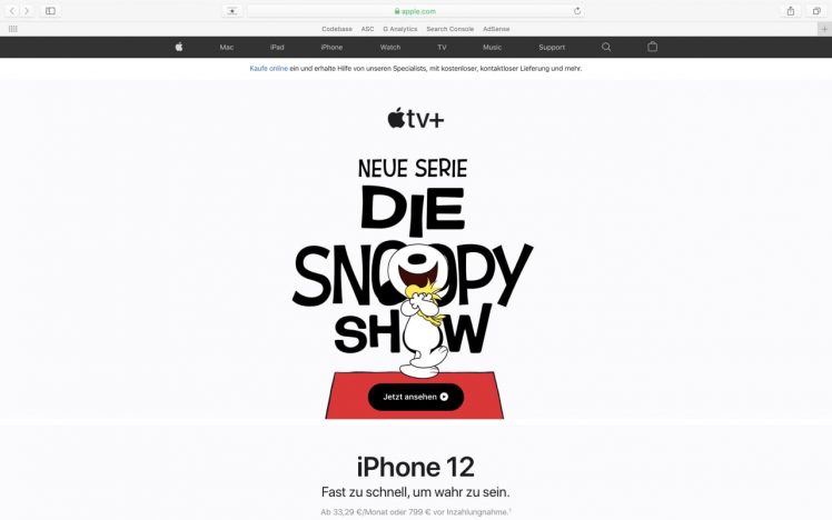 Zum Start der „Snoopy-Show“ hat Apple sogar seine Homepage angepasst, hier zwei Beispiele: