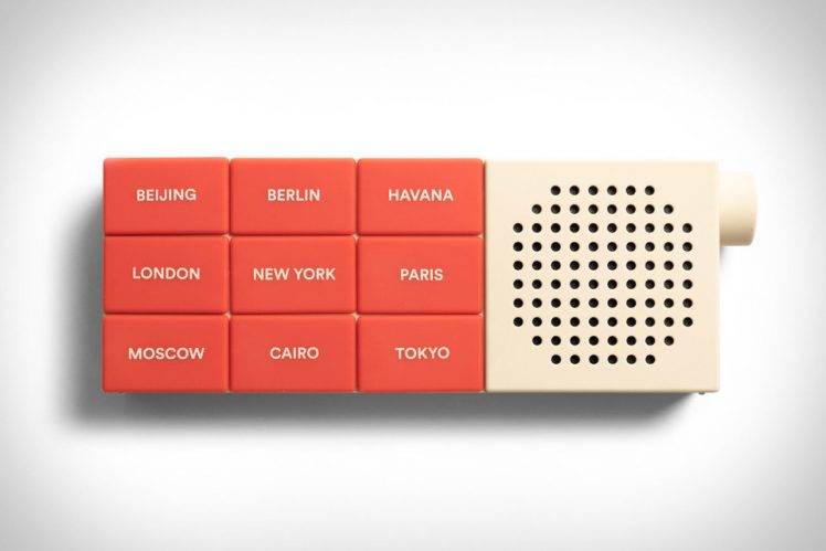 Bei dem Gadget handelt es sich um ein kleines Radio mit neun austauschbaren Buttons. Auf jedem Button findet sich der Name einer großen Stadt wie Berlin, London, Tokio oder Kairo.