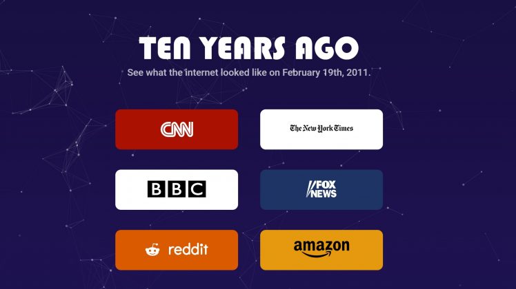 Ten Years Ago erinnert an die Wayback Machine von Archive.org, von wo auch die Daten bezogen werden. Ihr könnt Websites ansehen, wie sie vor 10 Jahren ausgesehen haben.