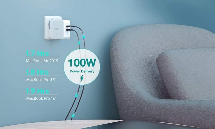 Laut Statistiken ladet Ihr mit der 100W-Einsatzvariante ein MacBook Air von 2019 in nur 1,7 Stunden, ein MacBook Pro in knapp 1,9 Stunden auf. Dafür sorgt die „Power Delivery“ Technologie des Herstellers.