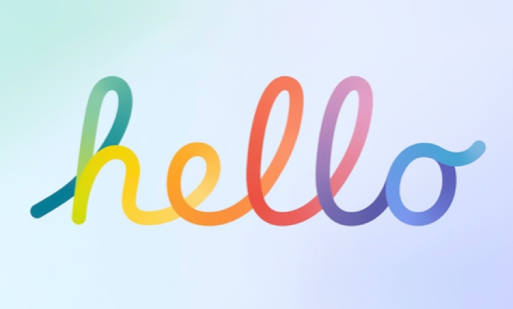 Er ist eine Hommage sowohl an die neuen iMacs als auch den ersten Macintosh. Denn im Zentrum steht der berühmte „hello“-Schriftzug Apples.