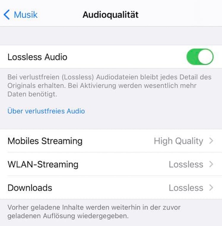 Ihr zahlt nichts extra für Lossless. Wie Dolby Atmos sind die hochwertigen Songs in Lossless-Qualität gratis für Abonnenten erhältlich. Danach könnt Ihr sie streamen und herunterladen. Denkt aber dran: Lossless-Daten sind groß und verbrauchen viel Datenvolumen. Die Qualität der Wiedergabe kann daher je nach Lage (WLAN, Offline, Streaming) in den Einstellungen festgelegt werden.