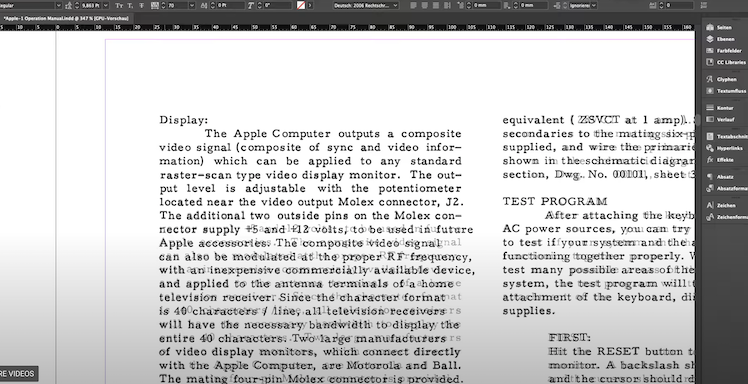 Es existieren Scans des Apple I Handbuchs, doch diese waren Armin Hierstetter nicht genau genug, im falschen Format und zu verpixelt. Also machte sich der Münchener daran, eine digitale 1-zu-1 Kopie zu erstellen. Hätte er gewusst, wie viel Arbeit das wird, hätte er die Idee nach eigenen Aussagen gleich fallen gelassen.