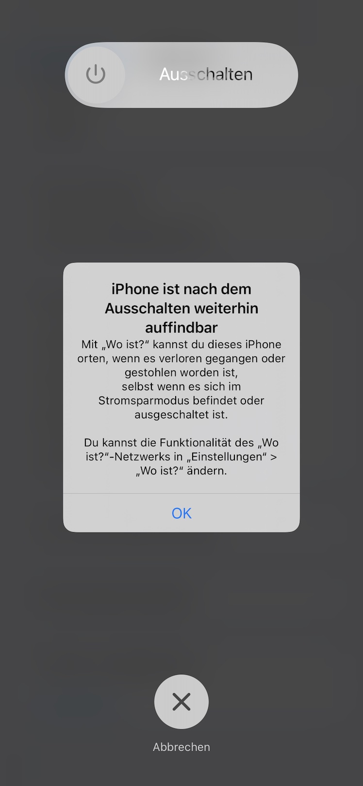„Mit Wo ist? kannst du dieses iPhone orten, wenn es verloren gegangen oder gestohlen worden ist, selbst wenn es sich im Stromsparmodus befindet oder ausgeschaltet ist.“