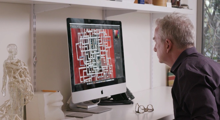 Ihr seht den Briten Stephen Doyle bei seiner täglichen Arbeit am Mac, Kunstwerke vom Segelschiff bis zum U-Bahn-System zu erstellen und diese dann entsprechend aus Papier zu bauen.