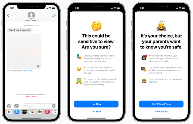 Sie greifen dabei auch ineinander. So werden künftig Bilder mit sexuellen Inhalten, die über Chats in iMessage verschickt werden, auf Wunsch der Eltern zunächst von einer KI analysiert und ggf. verschleiert. Nur die Eltern können die expliziten Inhalte dann freigeben.