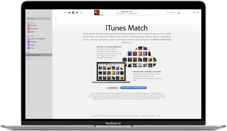 Eigentlich sollen dank iTunes Match Songs auf allen Geräten verfügbar sein. Dabei lädt iTunes Match nur Songs in die Cloud des Nutzers, wenn derselbe Song nicht in der iTunes-Bibliothek gefunden werden kann.