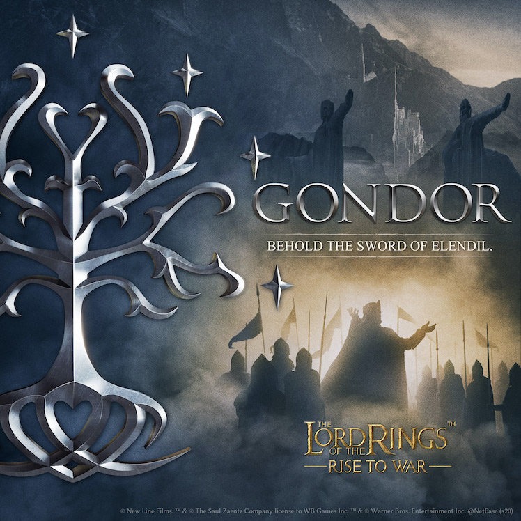 Gondor ist Sindarin für „Land des Steins“, was auch der Name der Spezialfähigkeit dieser Fraktion ist. Hier können sich die Spieler einen Vorteil beim Bauen verschaffen, da die Bauzeit um 5 Prozent reduziert wird. Der Schwanenritter ist die Spezialeinheit dieser Fraktion.
