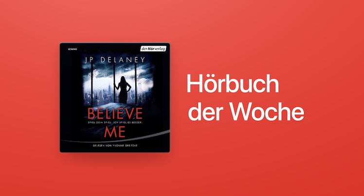 Diesmal wurde der Krimi Believe Me – Spiel Dein Spiel. Ich spiel es besser von J.P. Delaney als „Hörbuch der Woche“ ausgewählt. Ihr erhaltet es vorübergehnd reduziert für nur 4,99 Euro. Die Laufzeit des Titels: 7 Stunden und 43 Minuten. Gelesen wird der spannende Titel von Yvonne Greitzke.