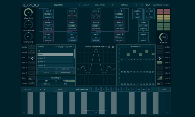 Historisches Vorbild ist der FM-Synthesizer Buchla 700, der 1987 vorgestellt wurde, aber nicht erfolgreich war: Gerade einmal 14 Einheiten wurden gebaut. Wie ID700 nun aber zeigt, waren seine klanglichen Fähigkeiten aber immens.